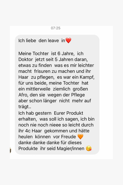 Ich habe schon viele Produkte vorher ausprobiert aber jetzt habe ich endlich mein Conditioner gefunden. Gerade mit Locken ist es schwierig, die richtigen Produkte zu finden. Das gute an diesem Conditioner ist, das man nicht viel von der Menge braucht, um geschmeidiges Haar zubekommen. Nachdem waschen fühlt sich das Haar sehr gut und erholt an. Es hat eine tolle Struktur und die Haare stehen nicht überall ab.